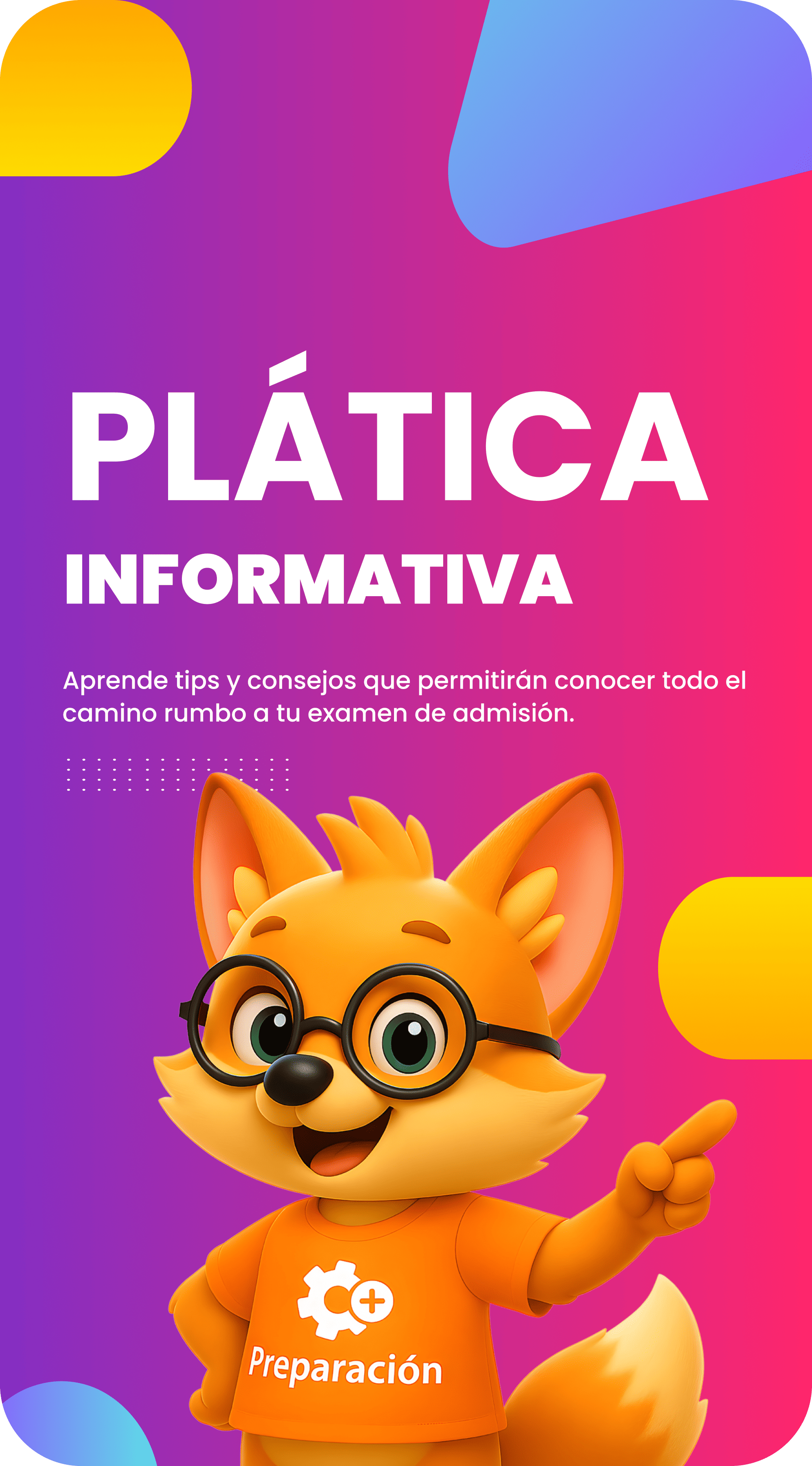 Si quieres ingresar a preparatoria o universidad y no sabes por dónde empezar, esta plática es para ti. Participa en nuestra plática informativa gratuita y entérate de todo: procesos de admisión, requisitos, fechas clave y consejos exclusivos para mejorar tus posibilidades de éxito. Además, podrás realizar un examen simulacro sin costo para conocer tu nivel actual y planificar tu preparación desde ahora.